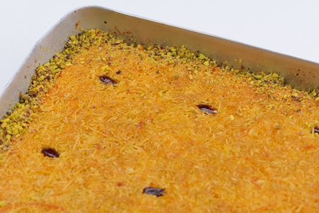 Kunafa Traditional middle eastern dessert made from cheese pastry soaked in sweet sugar-based syrup