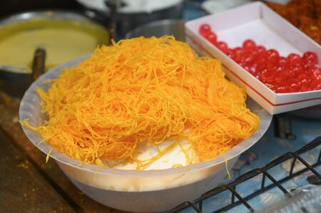 Butter roasted Kadayif pastry, fine dough threads for delicious sweet desserts, Turkish cuisine