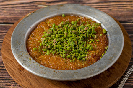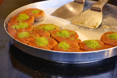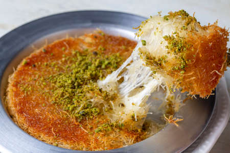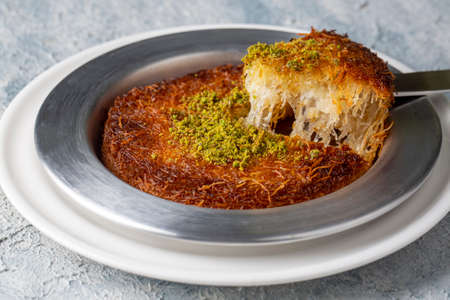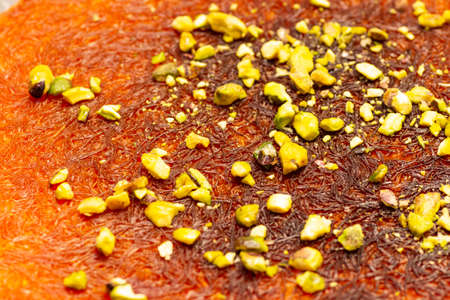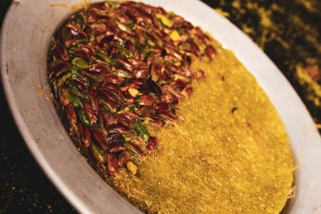 Delicious traditional Turkish dessert: Kunefe kadayif with pistachio and cheese