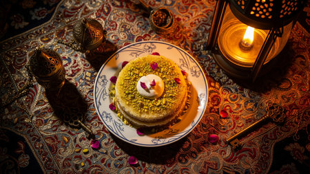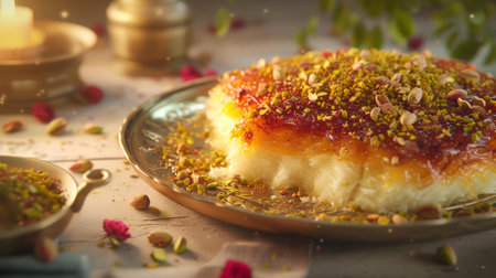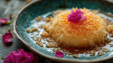 Lebanese Kanafeh with pistachio and rose petals