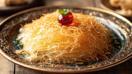 Tempting kunafa on a silver plate at a restaurant