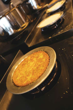 Turkish sweet kunefe. ( Kunafa ) . Kadaif with cheese. Hot eaten a sweet.
