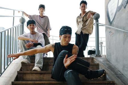 Enjoying Hip-Hop Dance Outdoors on Urban Staircase