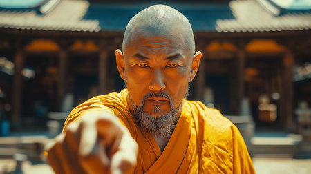 Monk Kung Fu Trains at Emphasis in an Ancient Temple., generative AI