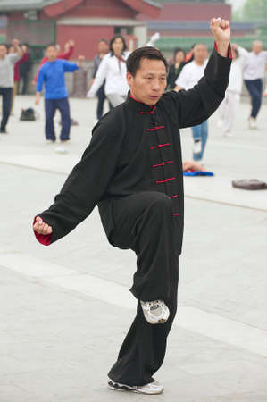 Beijing, China, May 01, 2009 - People practice tai chi chuan gymnastics in Beijing, China.