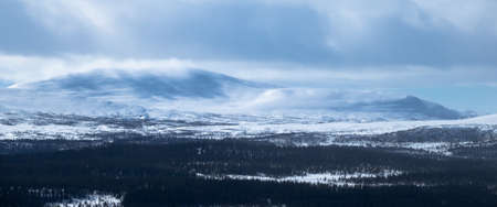 beautiful wild snowy winter landscape of Sarek national park in swedish lappland