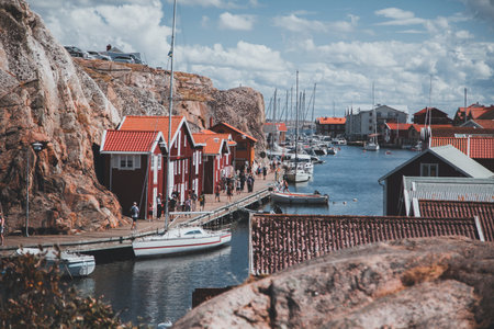 Smögen, Sweden -June 9: Small village with colorful houses on West coast of Sweden on one small island