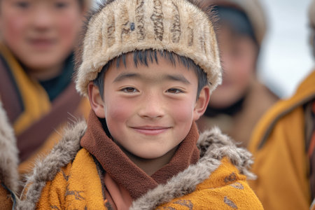 A Chukchi man stands confidently amidst the rolling hills of Chukotka, dressed in warm layers that reflect his cultural identity.