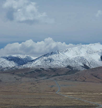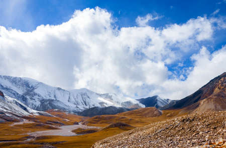 snowy mountain peaks on the Ala Bel pass, Bishke-Osh highway, M41, Kyrgyzstan