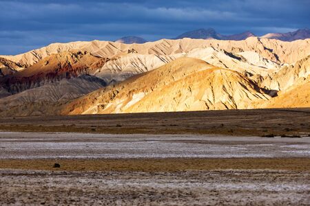 Himalayan mountain landscape along Leh to Manali highway during sunrise in India. Majestic rocky mountains morning in Indian Himalayas, Ladakh, Jammu and Kashmir region, India. Nature, travel concept