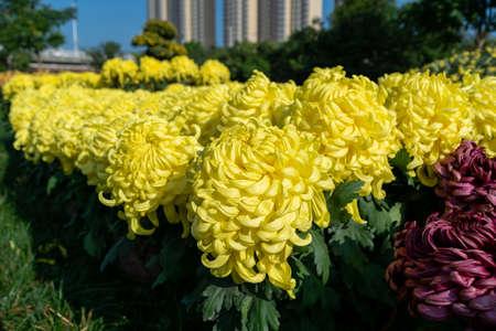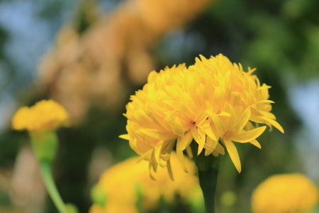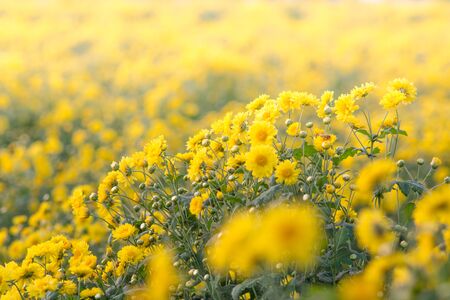 Yellow chrysanthemum flowers, chrysanthemum in the garden. Blurry flower for background, colorful plants