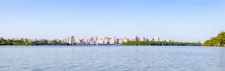 Panorama with Buildings in Porto Alegre city and Guaiba river, Rio Grande do Sul, Brazil