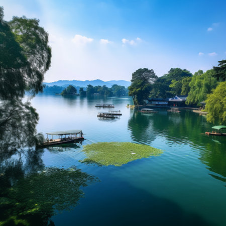 Han Lake, from Nang Pedalhos, Pagoda, Mountains., generative AI