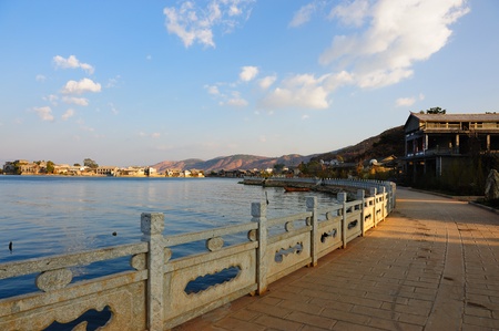 Sightseeing road near the lake in Dali, Yunnan province of China