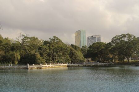 The city landscape of South Lake by Huizhou West Lake Scenic Area, Huizhou city, Guangdong, China