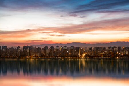 Sunset of Minjiang river and cityscape in fuzhou,China