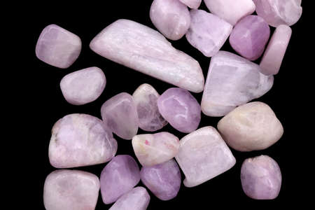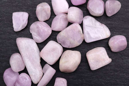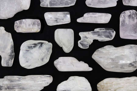 Morganite rare jewel stones texture on black background. Horizontal orientation.
