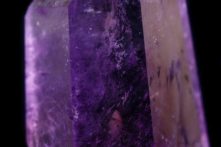 Macro mineral stone Amethyst crystal on a black background close-up
