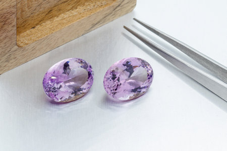 the kunzite stone, a rare and vibrant gem, glimmers against a pristine white background, showcasing its mesmerizing pink to lilac hues, a true marvel of nature's craftsmanship, perfect for jewelry enthusiasts and collectors of precious stones, highlighting its unique beauty and rarity. ai generated