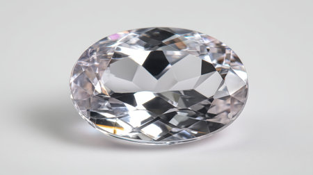 This stunning oval gemstone showcases intricate facets that reflect light beautifully. Its clarity and brilliance make it an ideal choice for luxury jewelry and decorative art pieces.