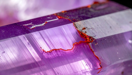 A captivating closeup of a stunning purple crystal resting on a natural surface, showcasing its vibrant color and intricate details, perfect for nature lovers.