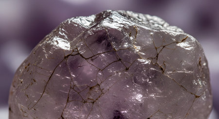 Macro shot of a lavender crystal geode revealing intricate patterns and a shiny texture