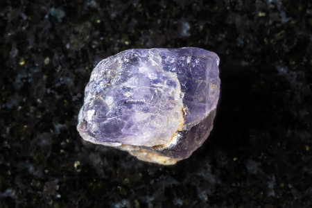 sample of unpolished crystal on black granite background close up