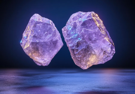 Floating crystals with purple and blue neon light