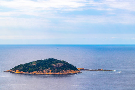 Ilha Urubuqueçaba, an island in Sao Vicente, Brazil, with the sea, rocks, and sky.
