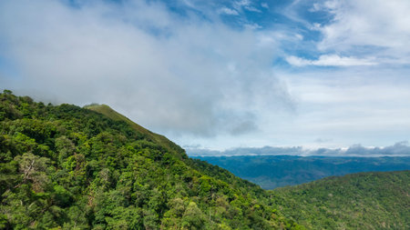 Beautiful mountain forest scenery in Taiwan. Elevated view of beauty nature landscape with green mountains and blue sky at day of summer. Scenic of journey asia.