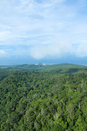 rain forest tropic landscape under sunlight in the summer with blue sky background