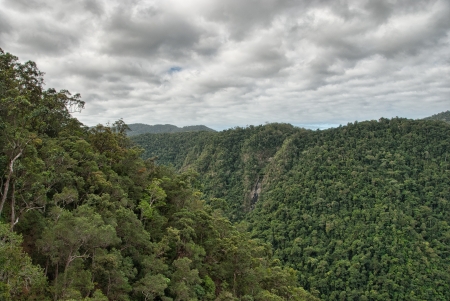 Skyrail Rainforest Cableway, a 7.5 kilometre scenic cableway running above the Barron Gorge National Park a World Heritage in the Wet Tropics of Queensland, Australia.