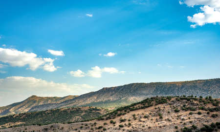 Rocky Mountains with oak trees and cloudy sky, Rocky Mountain khuzestan province, Iran