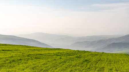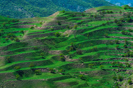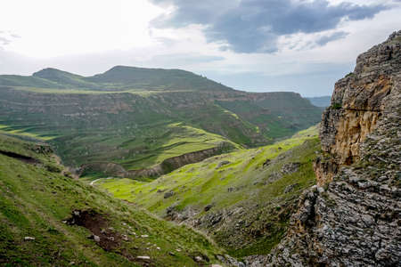 Picturesque green valley and mountains in Dagestan republic in Russia