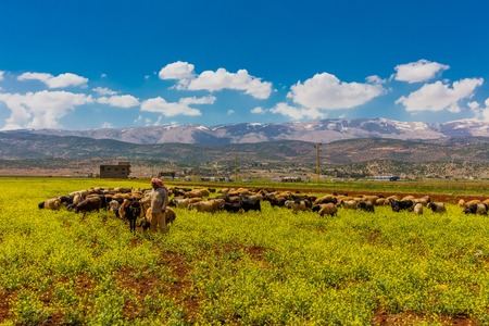shepherd and his herd in Beeka valley Lebanon Middle east