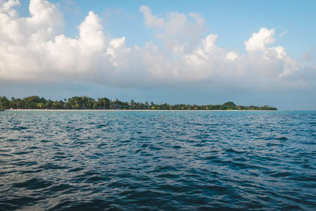 Maldives with the turqoise ocean and clouds on the sky