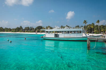 Maldives with the turquoise ocean and boats on the awesome water