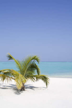 Beautiful tropical Maldives beach and coconut palm trees. Travel background.