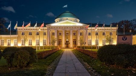 Night view of the Tavrichesky Palace, the former residence of Prince Potemkin-Tavrichesky, built in 1783-1789, cultural heritage site, Shpalernaya Street: St. Petersburg, Russia - 09 October, 2022