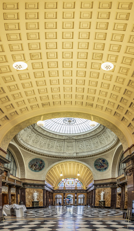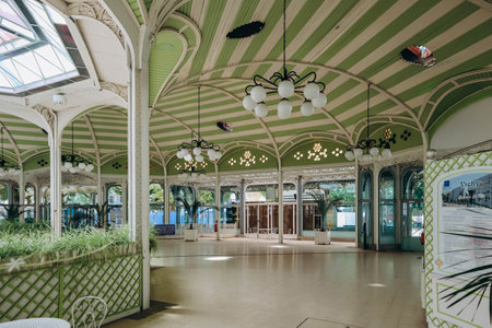 Bad Kissingen/Germany-31/12/18: the interior of the Wandelhalle (Convertible hall) in the spa area on Am Kurgarten in Bad Kissingen designed by Max Littmann, a german architect