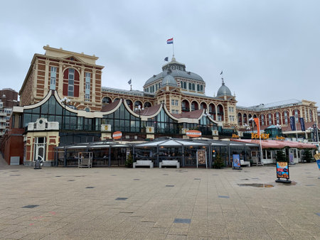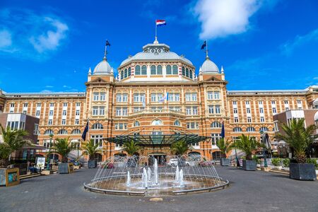 Scheveningen, Netherlands - August 10, 2020: view of the famous, old Hotel Kurhaus with restaurants in front of the hotel