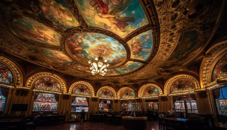 Luxury chandelier illuminates elegant domestic room in famous historic building generated by artificial intelligence