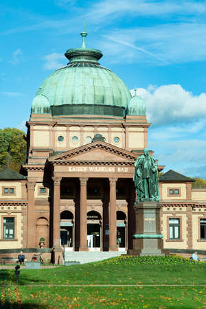 Bad Homburg, Germany - November 2, 2020: Kaiser Wilhelm bath in Bad Homburg under blue sky.