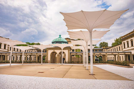 View of Kurhaus from Kurpark in Wiesbaden, Hesse, Germany. Wiesbaden is one of the oldest spa towns in Europe