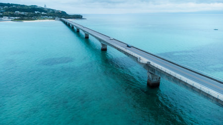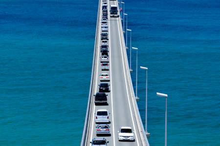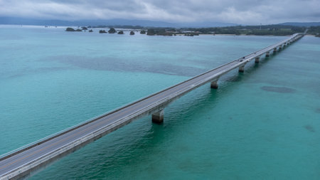 Okinawa, Japan-June 19, 2020: Irbu Owashi Bridge Connecting Miyakojima island and Irbu island, the longest charge-free bridge in Japan