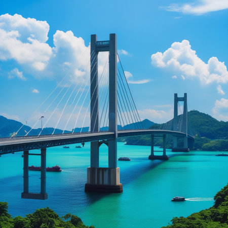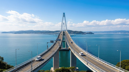 Shimanami kaido cycling route, Japan. Tatara Bridge. High quality photo