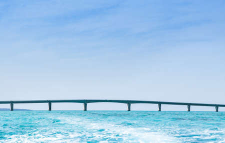Kouri island bridge with beautiful sea level with blue sky in Okinawa, Japan