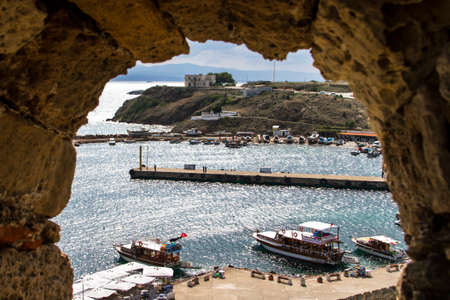 View marina from window of Tenedos Castle, Bozcaada, Canakkale, Turkey.