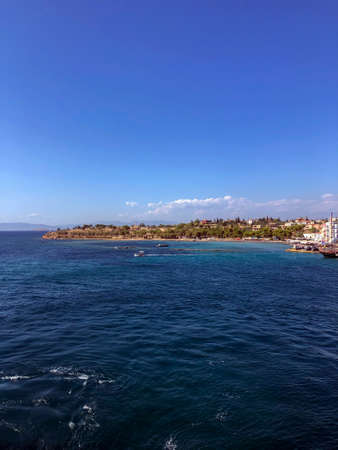 View of the city of Kusadasi. Coastline of the Turkish resort town.