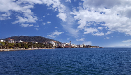 City of Volos waterfront on a cloudy day, Thessaly, Greece